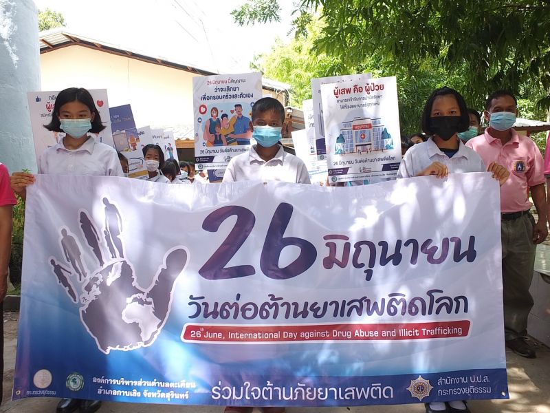 วันนี้ (22 มิ.ย.2564) เวลา 13.30 น. นายทองคำ เฉลิมรัมย์ นายกองค์การบริหารส่วนตำบลตะเคียน และผู้อำนวยการศูนย์ปฏิบัติการป้องกันและปรามยาเสพติดองค์การบริหารส่วนตำบลตะเคียน พร้อมด้วยเจ้าหน้าที่ประจำศูนย์ฯ องค์การบริหารส่วนตำบลตะเคียน โรงพยาบาลส่งเสริมสุขภาพตำบลบ้านสกล คณะครู นักเรียน และสมาชิกชมรม To Be Number One โรงเรียนบ้านสกล จัดกิจกรรมรณรงค์ประชาสัมพันธ์เพื่อสร้างการรับรู้เกี่ยวกับโทษภัยจากยาเสพติด ดำเนินการตามมาตรการป้องกันยาเสพติด เพื่อลดผู้เสพ/ผู้ติดยาเสพติด (Demand side) ยุทธการพิชิตภัยยาเสพติด ด้วยแนวคิดชีวิตวิถีใหม่ เนื่องในวันต่อต้านยาเสพติดโลก (26 มิถุนายน) ประจำปี 2564 ของกระทรวงมหาดไทย ณ โรงเรียนบ้านสกล ตำบลตะเคียน อำเภอกาบเชิง จังหวัดสุรินทร์